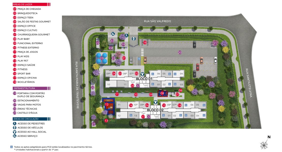 O condomínio conta com lazer completo, incluindo brinquedoteca, playground, churrasqueira, fitness externo, espaço gourmet, área de bem-estar e espaço office, perfeito para quem busca conforto e conveniência em um só lugar.
